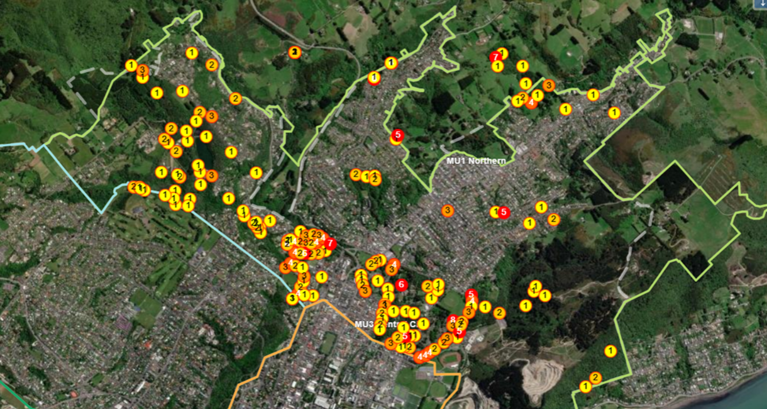 As trap lines were installed across more council reserves, we saw a flurry of catches as we completed the ‘knockdown’ phase (when traps are checked frequently and placed at a high density. The red dots on the maps represent the highest number of catches at a trap. You get a good indication of where possum and rat populations are highest.